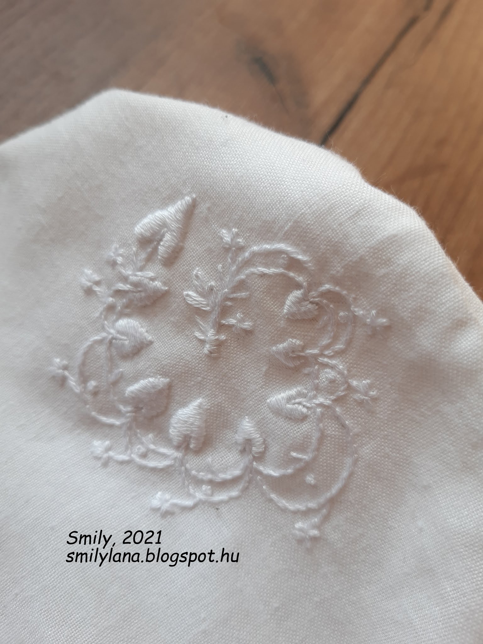 Вышивка белым по белом по рисунку 1817 года из Ackermann's Repository of Arts. Выкройка 1878 года из La Mode Illustrée. 100% хлопок. Вышито вручную, собрано на швейной машинке. Размер на новорождённого, так что пришлось позировать бобру - на Золенькину головку чепчик не налезал.